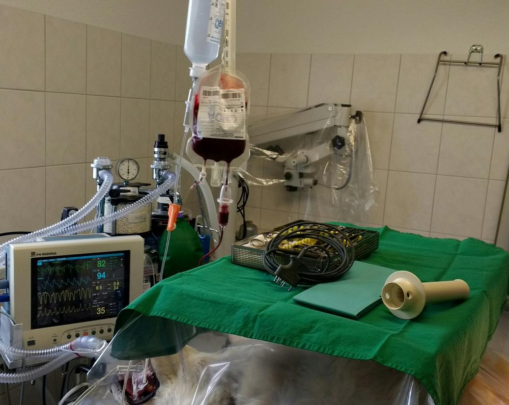 15kg Hund mit 2,5kg gutartigem Milztumor! Tierärztin Fisarova arbeitet mit dem LigaSure. So dauert die Milzentfernung nur 10-15Minuten und ist sehr blutungsarm und gewebeschonend für den Patienten.
