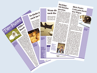 Lustiges und Wissenswertes rund ums Thema Tier erfahren Sie in unserem "Tier-Punkt". Hier lesen Sie wichtige Tipps zur Vorsorge und Prophylaxe. Eine Stichwortsuche ermöglicht Ihnen die gezielte Suche nach Themen, die Sie besonders interessieren. Übrigens: Jeden Monat finden Sie im Tier-Punkt auch einen neuen Buch-Tipp!