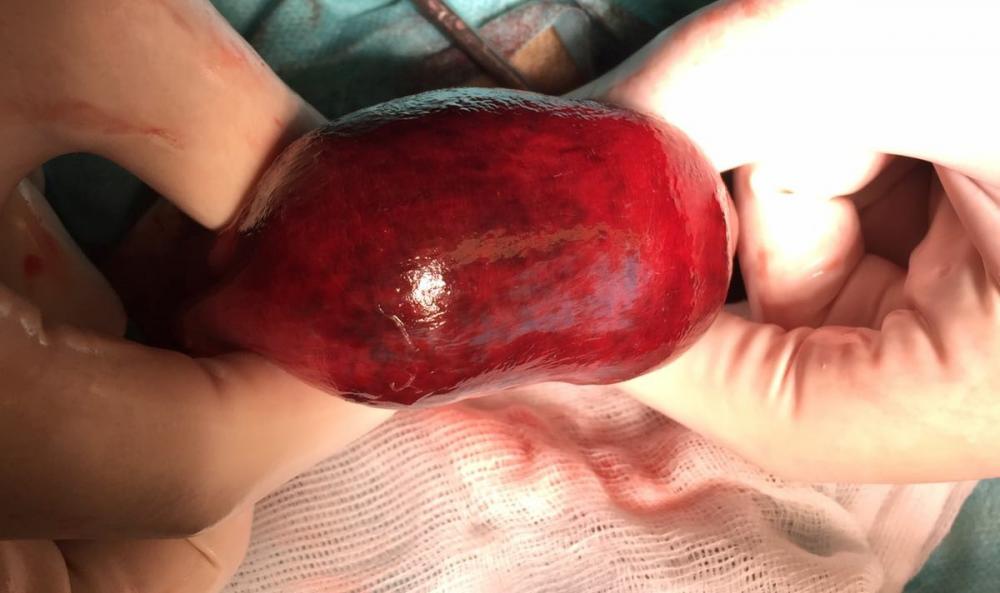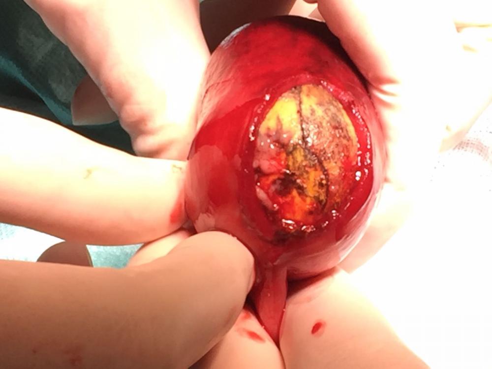 Unser Chirurgen-Team staunte nicht schlecht, als sie ein Überraschungsei im Hundedarm vorfanden.. Durch einen kleinen Schnitt wurde der betroffene Darmabschnitt eröffnet und das Ü-Ei entfernt.
