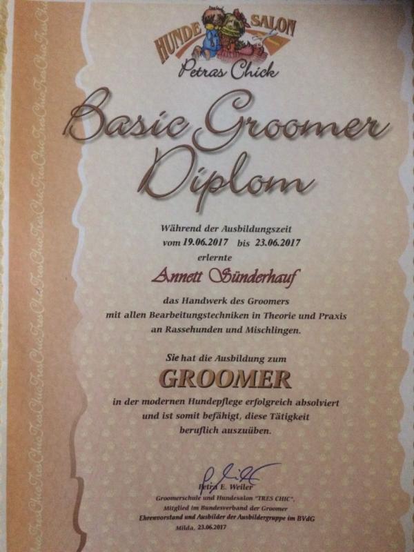 Wir gratulieren unserer Tierarzthelferin Annett Sünderhauf zum erfolgreichen Abschluß ihrer Ausbildung zum Hundefrisör und der erfolgreichen Absolvierung eines Kurses zur Beratung der Tierernährung