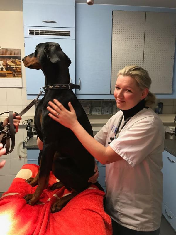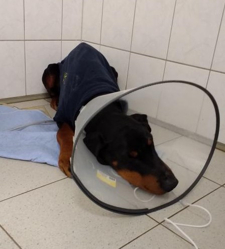 Der Dobermann Baron wurde uns als Notfall vorgestellt. Er wurde gerade in einer Pension betreut als auffiel, dass er nur noch tröpfelnd und zuletzt überhaupt keinen Urin mehr absetzen konnte. Die Besitzer waren vorher schon seit einem halben Jahr deswegen in Behandlung gewesen und ahnten im Urlaub nicht, dass sich gerade eine Katastrophe anbahnte..