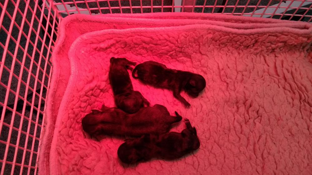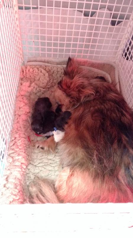 Vor drei Tagen wurde Hündin Mufinka von ihrer Züchterin vorgestellt. Am Telefon erzählte die Besitzerin die Hündin sei in der Geburt, aber es gänge nicht so recht vorwärts. Wir rieten ihr, sofort vorbeizukommen und obwohl es Samstag Abend war, machte sich die Besitzerin auf den Weg ins Kleintierzentrum.