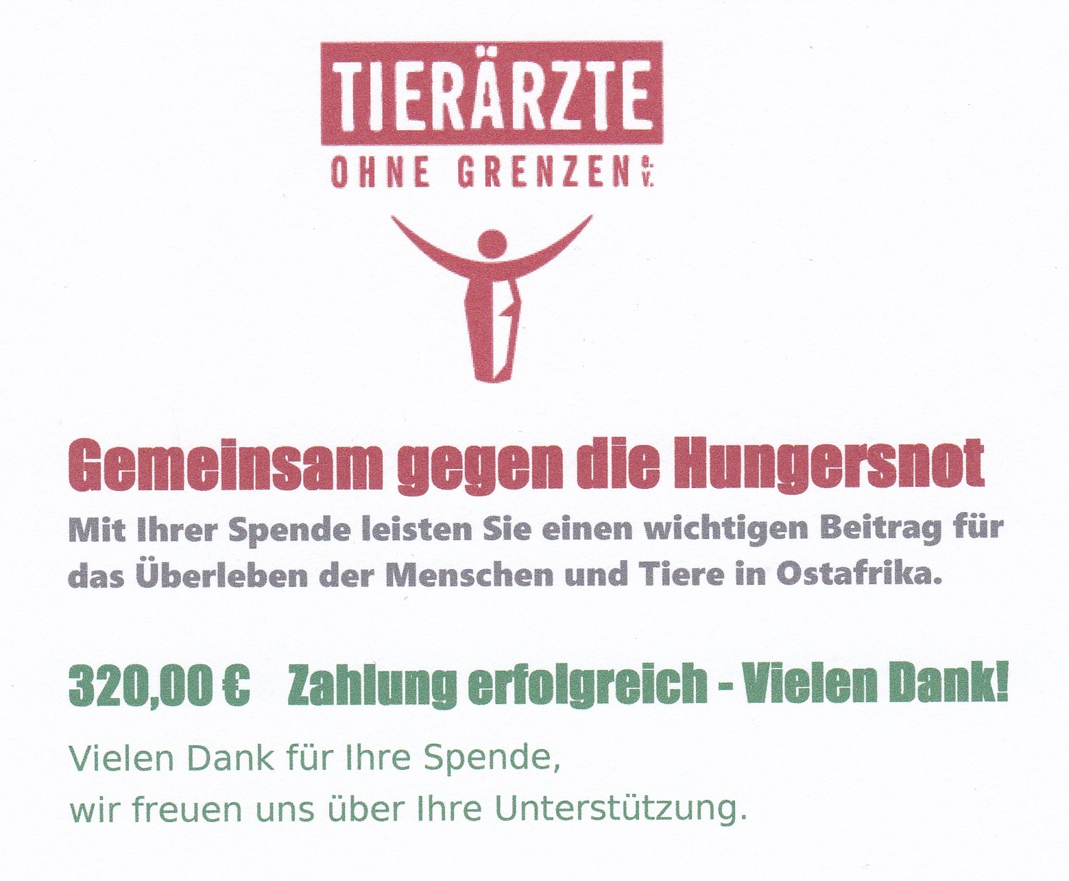 Anlässlich des Tages der Offenen Tür konnte im Rahmen der Tombola eine Spende von 320,- Euro für die Organisation Tierärzte ohne Grenzen gesammelt werden.